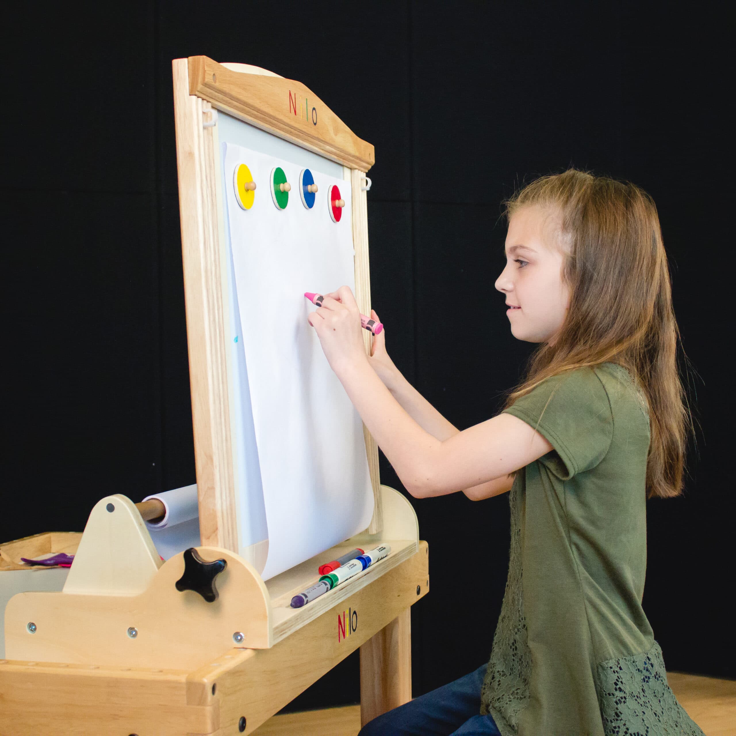 This easel is a great addition to your Nilo Table. My grandchildren use it all the time. We use the numbers and letters for learning words, spelling, numbers, addition, ect. They love to draw on the white board and on the paper. The quality was far more than I expected it to be for the price. It is so worth the purchase.