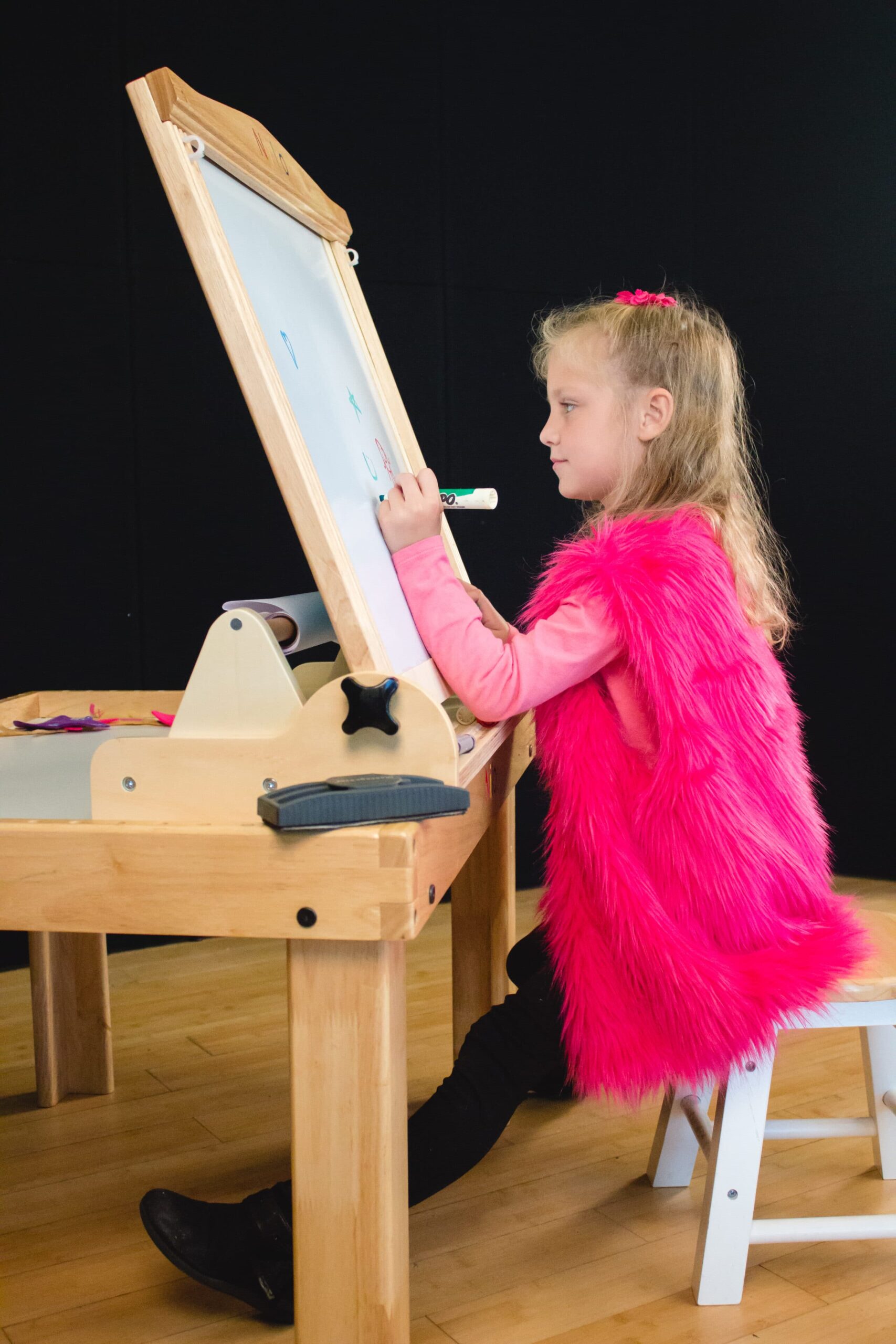 Draw, paint, color, present with puppets, play on the felt board, you name it! There are numerous possibilities with this versatile art easel for kids.