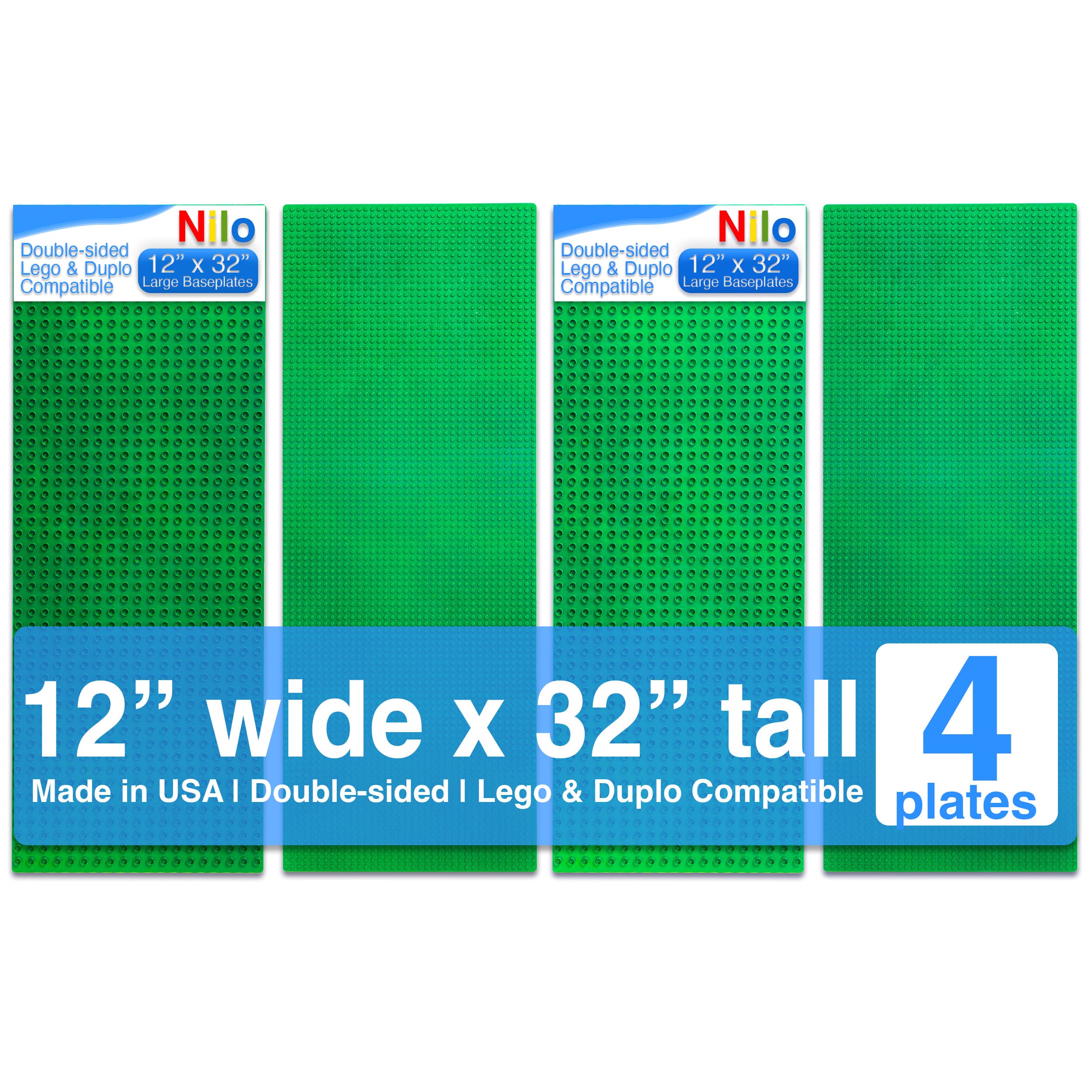 - Four Nilo green baseplates compatible with Lego Duplo baseplates yield a combined play area of 32″ X 48″