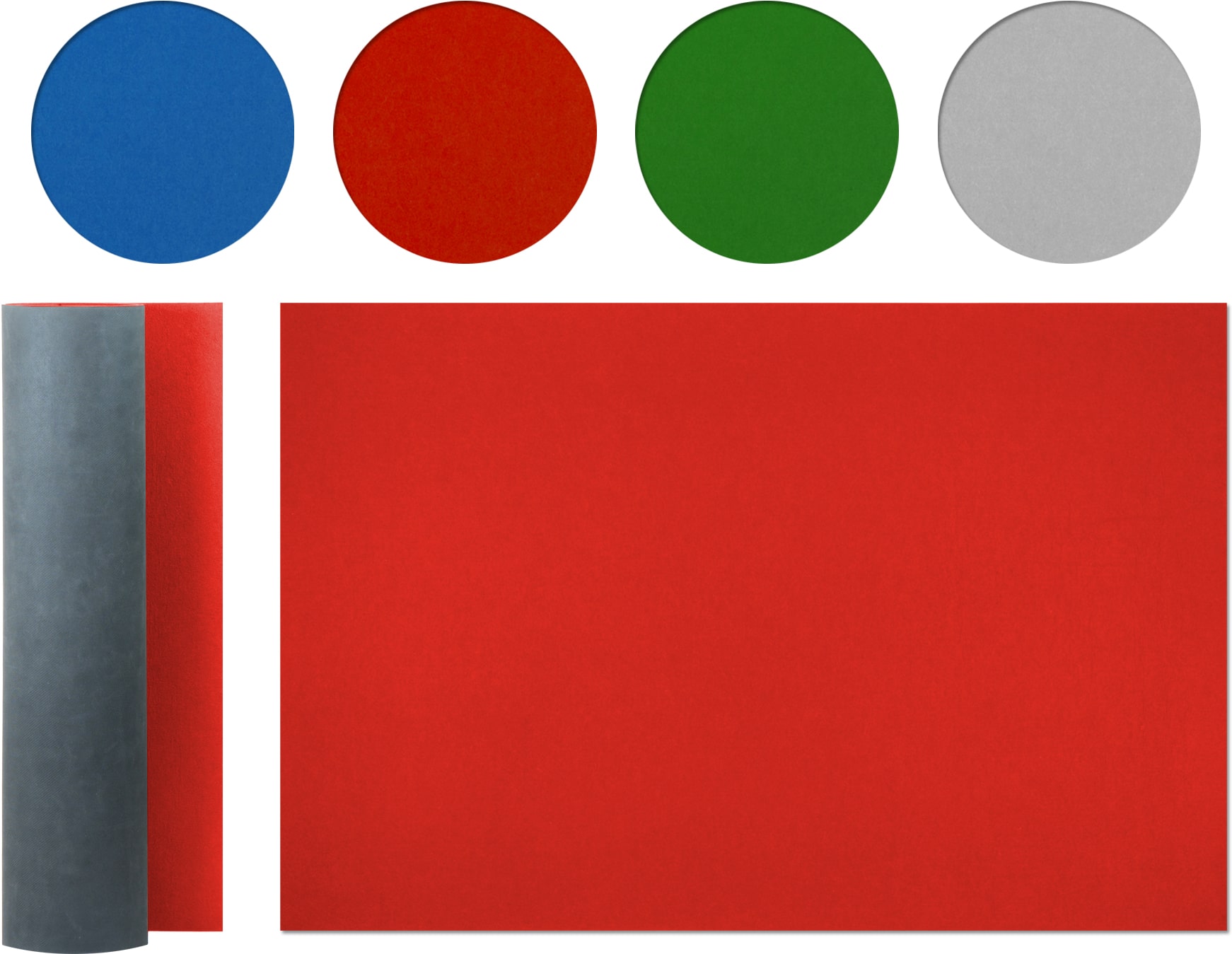 Includes a Roll-Out Gaming Table Topper with a top-quality nonslip neoprene rubber backing in your color choice of light grey, red, green, or blue. Note, we are low or out of stock on a few colors and sizes. We’ll get back to you if out of stock. (This is polyester, not felt, common in the gaming industry thanks to its superior wear and tear and easy-to-clean properties. For in progress puzzle storage use, place the pieces on the “rubber” side, not the slippery polyester side!)
