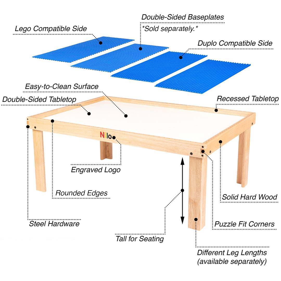 Nilo double-sided baseplates compatible with Lego Duplo convert your Nilo childrens play table into a compatible Lego Table and/or compatible Duplo Table. This play table for kids is truly the best table for legos and works with Megablocks and others.